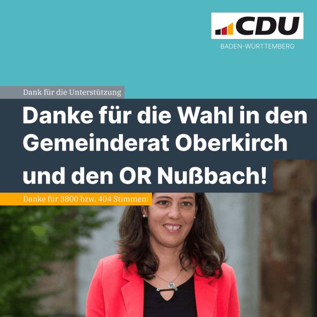 Als Kommunalpolitikerin in der CDU setze ich mich für eine lebenswerte und zukunftsfähige Stadt- und Gemeindeentwicklung in und um Oberkirch ein.